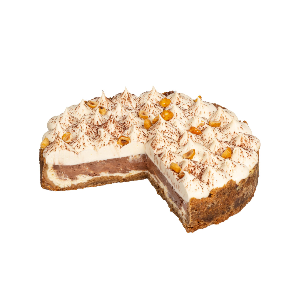 Milujete nutellu? Pak musíte vyzkoušet náš čokoládovo–oříškový Nutella cheesecake, který v kombinaci s karamelovými sušenkami, vláčným sametovým krémem a hromadou nutelly nadchne nejen děti! Nepečený korpus z karamelových sušenek Lotus v sobě ukrývá lahodnou kombinaci smetanového sýra Philadelphia, zakysané smetany a nutelly. Vršek dortu je posypaný holandským kakaem a karamelizovanými lískovými oříšky.